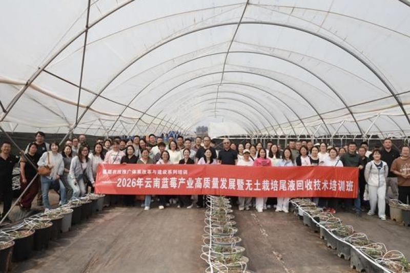 4月15日至17日,由云南省花卉技术培训推广中心、文山州农业农村局联合主办的基层农技推广体系改革与建设系列培训——2026年云南蓝莓产业高质量发展暨无土栽培尾液回收技术培训班(文山场)成功举办,来自文山州各县(市)农技推广人员、蓝莓重点种植企业、种植户代表百余人参训。